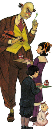 After their stay at Prufrock Preparatory School, Mr. Poe will send the children to two more sets of guardians. The first will be a wealthy couple – Esmé Squalor, a fashionable financial advisor, and her husband Jerome, a kind but meek man who hates to argue and prefers to follow the guidance of his wife.